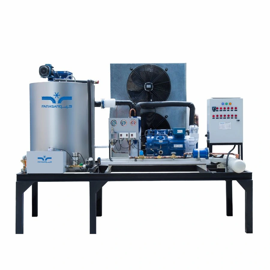 تیم فراسرد با بیش از چهار دهه تجربه در طراحی و تولید تجهیزات سرمایش صنعتی، مفتخر است دستگاه یخساز پولکی با ظرفیت 10 تن را به صنایع مرتبط ارائه نماید.
