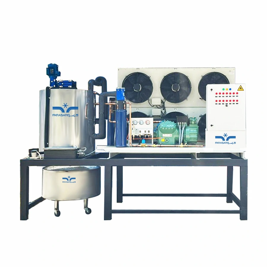 تیم فراسرد با بیش از چهار دهه تجربه در طراحی و تولید تجهیزات سرمایش صنعتی، مفتخر است دستگاه یخساز پولکی با ظرفیت 5 تن را به صنایع مرتبط ارائه نماید.